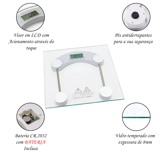 - Desligamento automático - ao descer da balança, a mesma irá desligar-se automaticamente após 8s